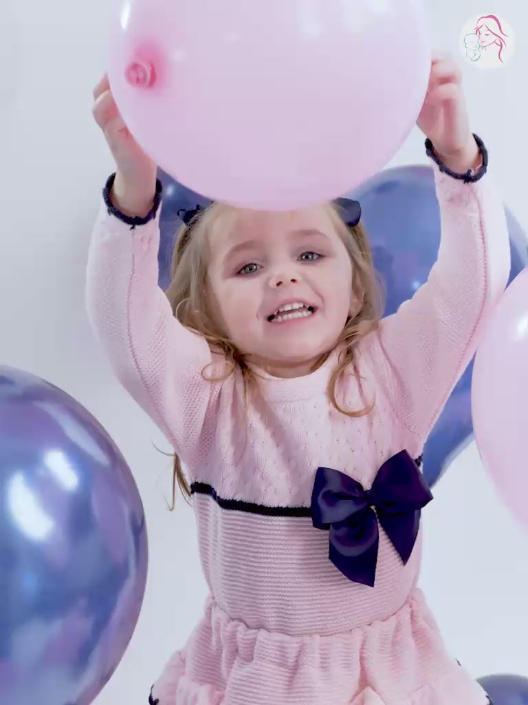 Dress your baby girl in style with our Baby Girl Adelina Collection 2-piece Spanish Knitted Set. This adorable set includes a pink long sleeve top with a navy satin bow and a knee-length skirt with two ruffles and contrasting curvy hem.