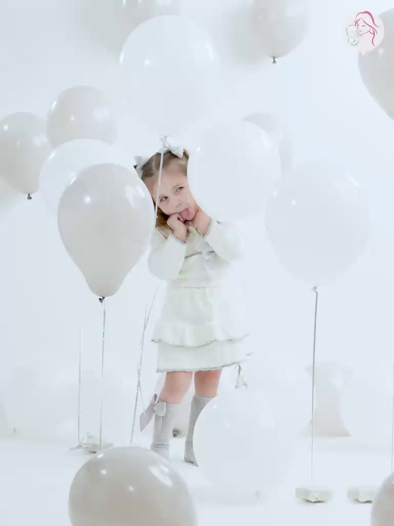 Dress your baby girl in style with our Baby Girl Adelina Collection 2-piece Spanish Knitted Set. This adorable set includes a ivory long sleeve top with a light grey satin bow and a knee-length skirt with two ruffles and contrasting curvy hem.