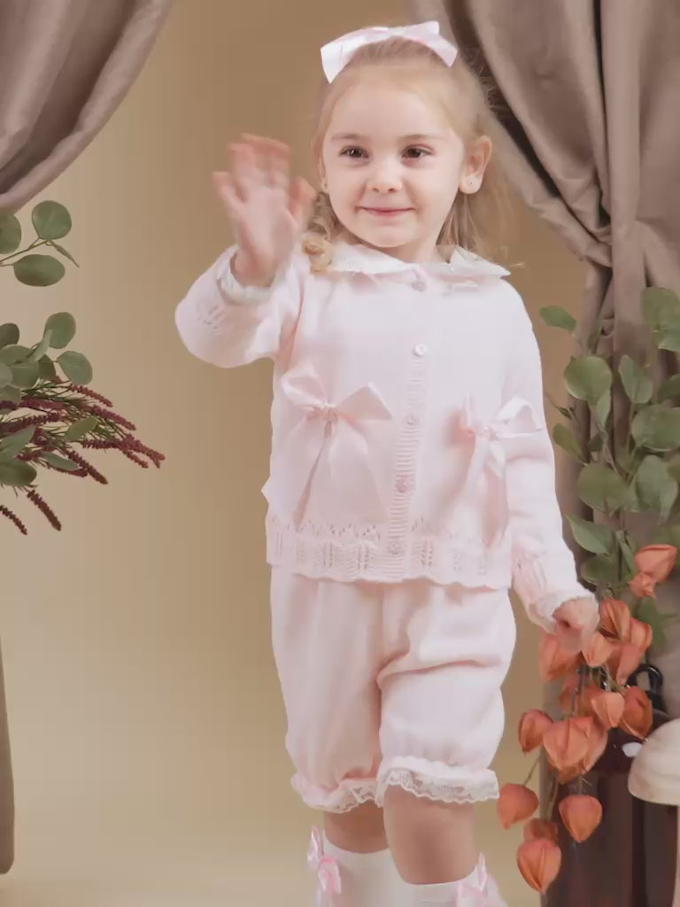 Baby Girl Bella Collection 3-piece Spanish Knitted Set - Baby Pink