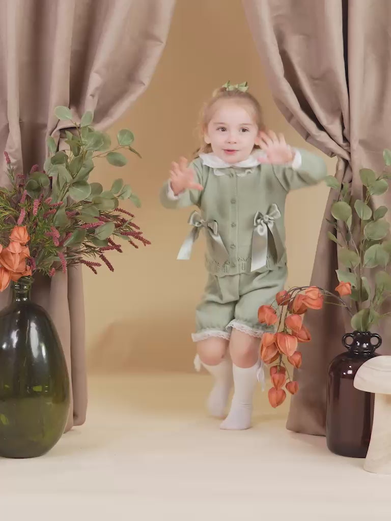 Baby Girl Bella Collection 3-piece Spanish Knitted Set - Sage Green