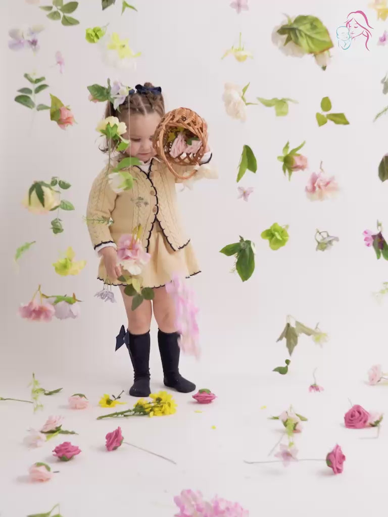 Dress your little girl up in our Baby Girl Viviana 3-piece Knitted Set! This set includes a knitted cardigan with a charming cable knit pattern, a matching romper with a ruffled dress-like design, and a white, soft cotton, long-sleeved shirt with a cute peter pan collar. With Navy ribbed detailing and button closures, this set is both stylish and practical. Your baby girl will be cosy, fashionable, and comfortable all at once!